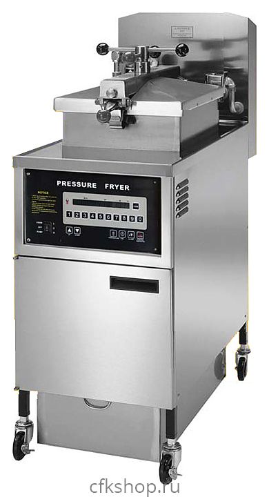 Фритюрница Kocateq PFE600 под давлением предназначена для приготовления различных продуктов в большом количестве масла или жира на предприятиях общественного питания и торговли. Модель оснащена цифровой панелью управления, термостатом для регулировки температуры, цифровым таймером до 90 минут и защитным термостатом, автоматически отключающим напряжение при повреждении основного термостата. Все части, соприкасающиеся с продуктами, выполнены из нержавеющей стали AISI 304, крышка - из анодированного сплава алюминия.