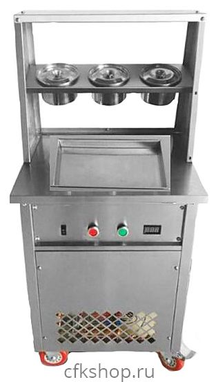Фризер для мороженого Foodatlas KCB-1F используется на предприятиях общественного питания и торговли для приготовления жареного мороженого в роллах. Модель оснащена механическим управлением, 3 цилиндрическими контейнерами, квадратной охлаждаемой поверхностью для "жарки" десерта при минусовой температуре и 4 колесами, 2 из которых снабжены тормозом. Корпус выполнен из нержавеющей стали 430, сковорода и контейнеры - из нержавеющей стали 304, радиатор - из алюминия.