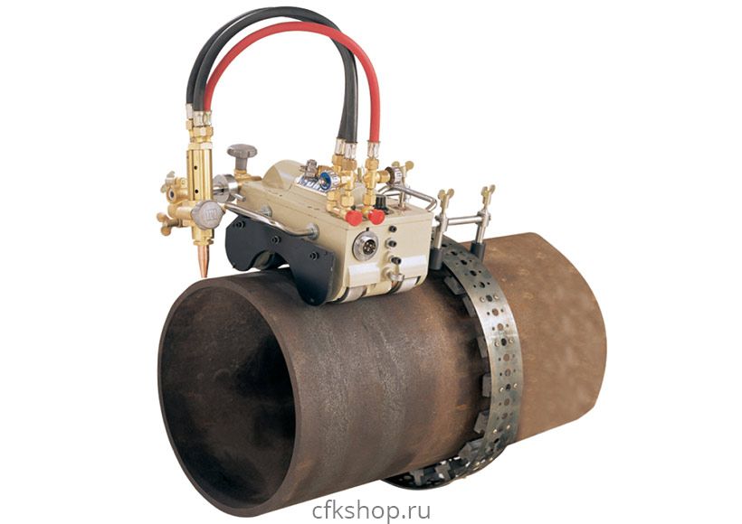 Газорезательная машина CG2-11 используется для резки металлических труб диаметром от 150 до 600 мм (свыше 600 нужен бандаж). За счет своей универсальности она может применяться и в производственных цехах, и в полевых условиях. Работает на электрическом приводе, машина оснащена одним резаком, тем самым обеспечивая полную механизацию операций по обрезке трубного металлопроката. Резка осуществляется с помощью аппарата газопламенной резки труб с применением ацетилена, пропана или их заменителей. Точность перемещения обеспечивается стальными бандажами, которые оборачиваются вокруг трубы. Держится на трубе с помощью магнитных колёс.