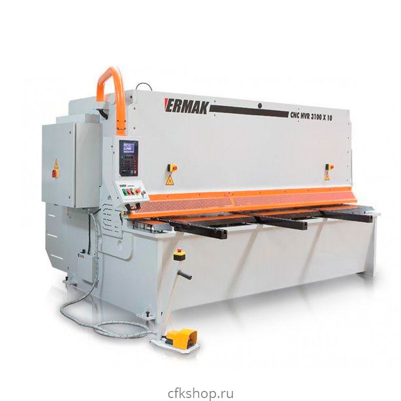 Для управления всеми функциями станка он укомплектован устройством ЧПУ CYBELEC CYBTOUCH 6 с сенсорным экраном. Устройство отличается простотой в использовании. Для резки необходимо лишь ввести данные о типе обрабатываемого материала, его длине и толщине, и установка автоматически настроит нужные параметры: положение заднего упора, зазор между лезвиями ножей, длину рабочего хода. Таким же образом устройство настраивает угол реза при изменении толщины материала, поэтому для резки узких листов используются короткие рабочие ходы, что уменьшает скручивание отрезанных полос и сокращает время операции. Особо прочные ножи из инструментальной стали, произведенные в Германии, тоже немаловажный фактор, влияющий на высокое качество производимого на них реза. К тому же, скручивание узких полос практически минимальное, так как угол резания у гильотины Ermak минимальный. Можно утверждать, что гидравлические гильотинные ножницы HVR Ermak без проблем выдержат долгие годы эффективной эксплуатации.