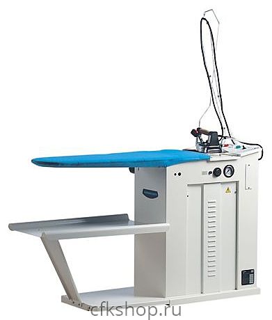 Консольный гладильный стол IMESA ASSE/156 оснащен вакуумным вентилятором, электрическим нагревом поверхности, бойлером и пароэлектрическим утюгом. Оборудование рассчитано на обработку большого количества всевозможных тканей: от грубого льна до тончайшего шелка.