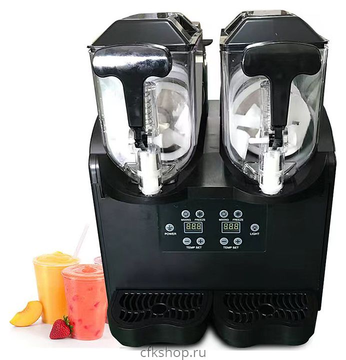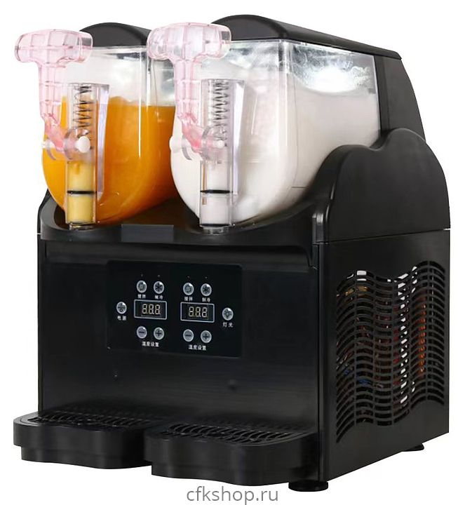 Сокоохладитель Kocateq SC3x2 используется на предприятиях общественного питания и торговли для приготовления замороженного напитка "фруктового снего". Модель оснащена электронной панелью управления и 2 сливными кранами с защитой от непроизвольного открывания и подкапывания. Корпус выполнен из черного пластика, емкость - из прозрачного поликарбоната.