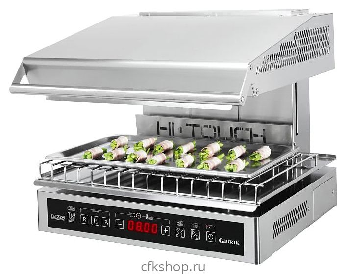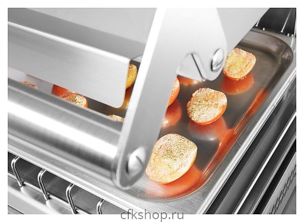 - Электронное регулирование интенсивности нагрева элементов при работе на максимальной температуре для предотвращения перегрева и равномерного приготовления блюда