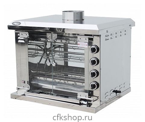 Гриль для кур Grill Master Ф4КУ1Г используется на предприятиях общественного питания и торговли для приготовления тушек кур, куриных окорочков, грудок и других продуктов. Модель оснащена системой газ-контроля, 4 съемными автономными инфракрасными горелками, 4 регулирующими кранами и внутренней подсветкой. Корпус и корзины для кур выполнены из нержавеющей стали, двери и задняя стенка - из закаленного стекла.