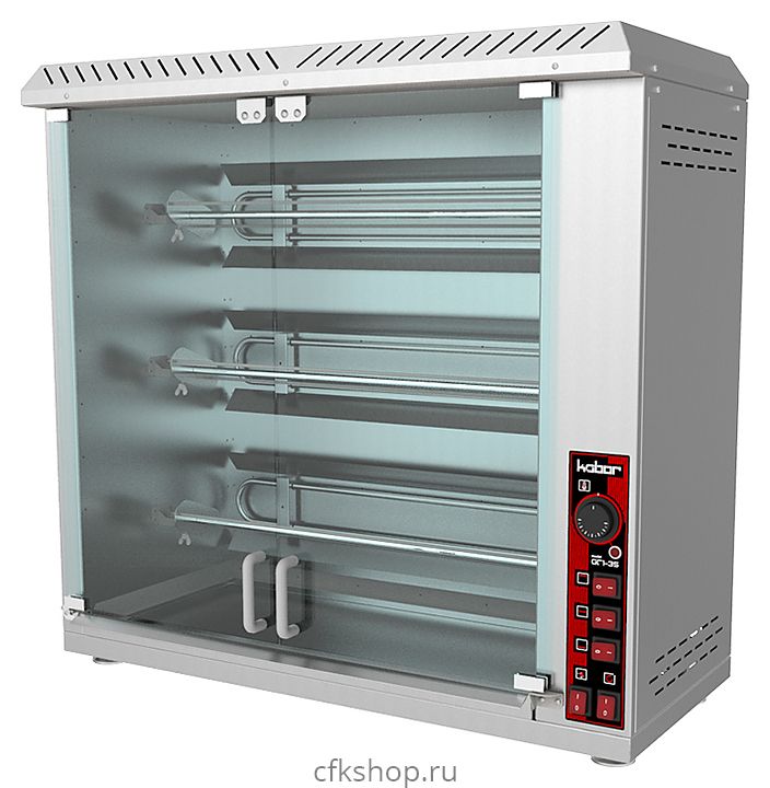 Гриль для кур Кобор GC1-3S используется на предприятиях общественного питания и торговли для жарки целых тушек цыплят, грудок, окорочков и других продуктов. Модель оснащена стеклянными дверцами, внутренней подсветкой, съемным поддоном и регулируемыми по высоте ножками. Корпус выполнен полностью из нержавеющей стали.