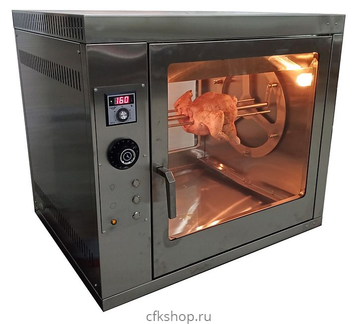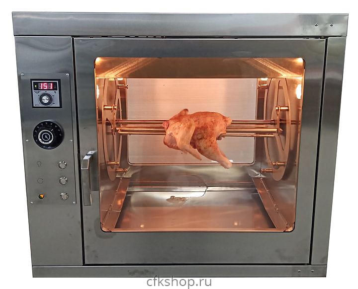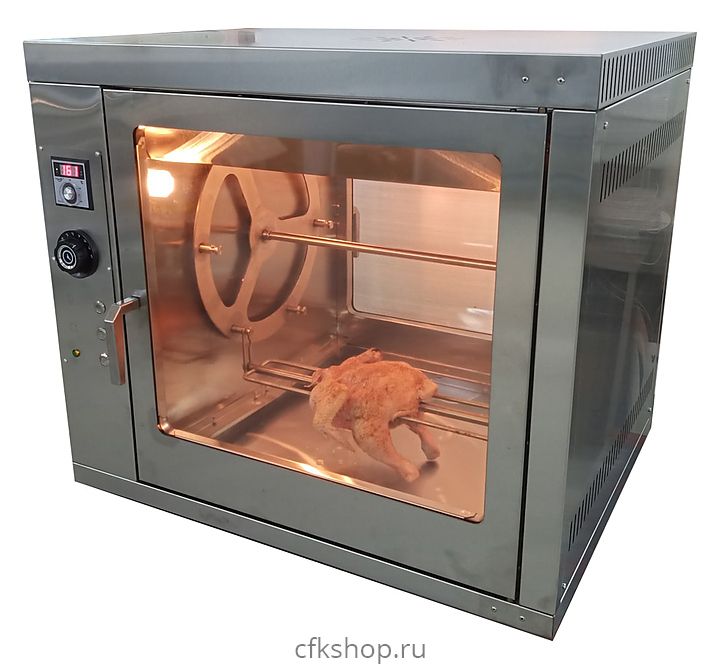 Гриль для кур ЦМИ ГККЭ-2Д используется на предприятиях общественного питания и торговли для приготовления тушек кур, куриных окорочков, грудок и других продуктов. Модель оснащена терморегулятором с цифровым табло, подсветкой, поддоном и ванночками для сбора жира. Оборудование полностью выполнено из нержавеющей стали, двери - из жаростойкого стекла.