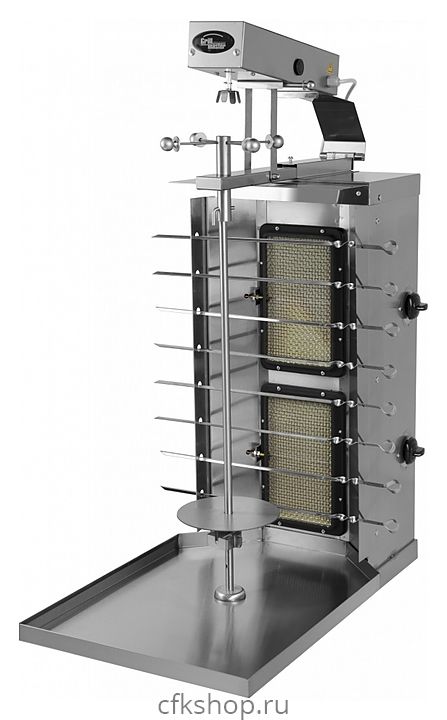 Газовый гриль для шаурмы Grill Master Ф2ШМГ(У) предназначен для запекания специально подготовленного свиного, говяжьего, бараньего и куриного мяса, используемого для приготовления шаурмы, на предприятиях общественного питания и торговли. Модель оснащена 2 горелками с системой газ-контроль, усиленным электроприводом основного шампура с сохранением возможности ручного вращения и поддоном для мяса. Оборудование выполнено из нержавеющей стали.