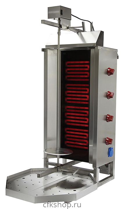 Гриль для шаурмы OZTI 4E предназначен для обжарки большого количества различных видов мяса и птицы на предприятиях общественного питания, а также в производственных цехах, деятельность которых связана с выпуском гастрономических товаров. Корпус выполнен из нержавеющей стали, панель перед нагревательными элементами - из керамического стекла.