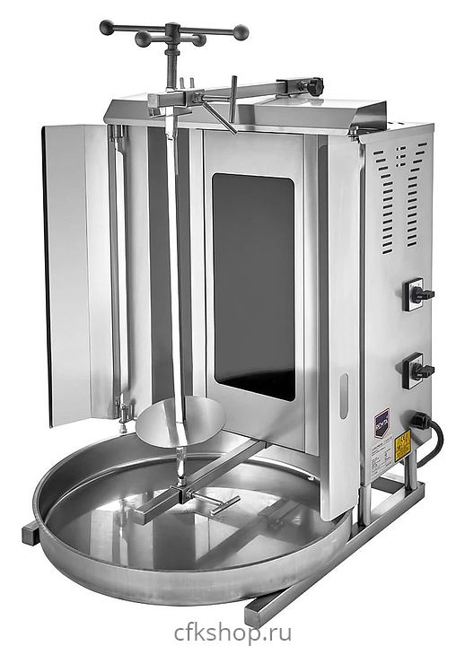 Гриль для шаурмы Remta SD15 предназначен для обжарки большого количества различных видов мяса и птицы для приготовления начинки для шаурмы, донера и других блюд на предприятиях общественного питания и торговли. Модель оснащена системой независимой регулировки каждого ТЭНа с 2 режимами мощности нагрева. Корпус выполнен из нержавеющей стали AISI 304.