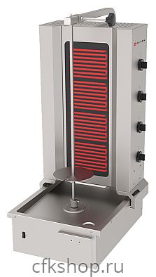 Гриль для шаурмы Tatra TDM E 4BW предназначен для обжарки большого количества различных видов мяса и птицы при приготовлении начинки из рубленного мяса для шаурмы и других блюд на предприятиях общественного питания и торговли. Модель оснащена электромеханической панелью управления, нижним приводом вращения вертела и емкостью для сбора жира. Корпус выполнен из нержавеющей стали.