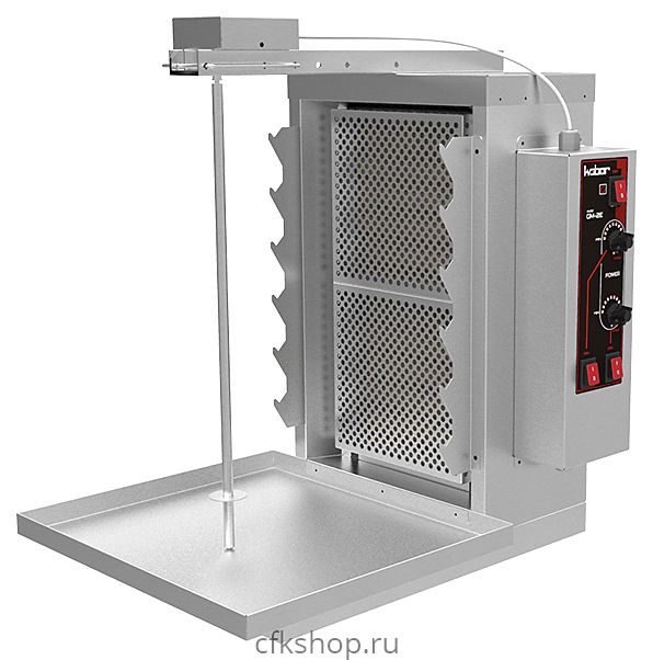 Гриль для шаурмы Кобор GM-2E используется на предприятиях общественного питания и торговли для обжарки большого количества различных видов мяса и птицы для приготовления начинки из рубленного мяса для шаурмы и других блюд. Боковые держатели позволяют использовать шампура для приготовления шашлыка и кебабов. Модель оснащена 2 ТЭНами. Корпус выполнен из пищевой нержавеющей стали.