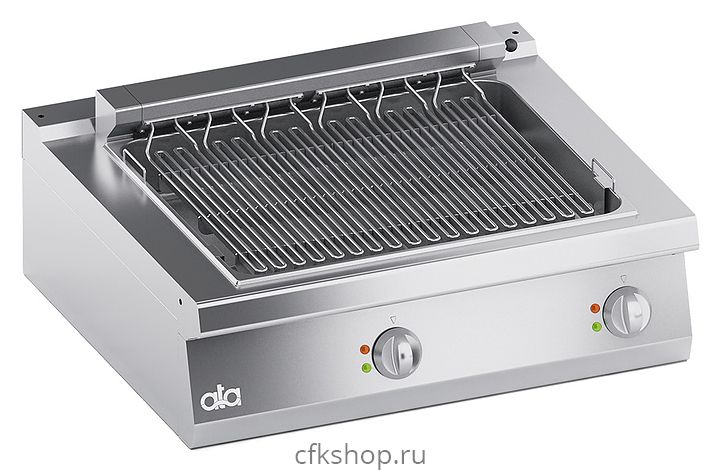 Электрический гриль АТА ELECTRIC DIRECT GRILL 1M COUNTERTOP предназначен для равномерного обжаривания мясных блюд, рыбы, курицы, шашлыков и хот-догов на предприятиях общественного питания и торговли. Модель оснащена съемным резервуаром для воды со сливным отверстием. Корпус и рабочая поверхность изготовлены из нержавеющей стали AISI 304, ручки - из термореактивного пластика.