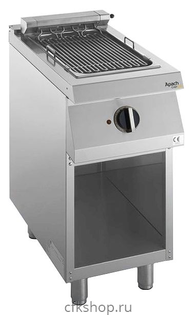 Электрический гриль Apach Chef Line SLGE47OS используется в составе тепловой линии 700 или самостоятельно на предприятиях общественного питания и торговли для обжарки мяса, рыбы и овощей. Модель оснащена съемным контейнером для воды, расположенным под нагревательными элементами, и открытой подставкой с регулируемыми ножками. Корпус выполнен из нержавеющей стали AISI 304, рабочая поверхность – из чугуна.
