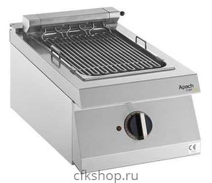 Электрический гриль Apach Chef Line SLGE49 используется в составе тепловой линии 900 или самостоятельно на предприятиях общественного питания и торговли для обжарки мяса, рыбы и овощей. Модель оснащена съемным контейнером для воды, расположенным под нагревательными элементами. Корпус выполнен из нержавеющей стали AISI 304, рабочая поверхность – из чугуна.