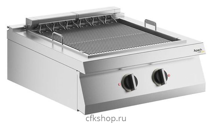 Электрический гриль Apach Chef Line SLGE86 используется в составе тепловой линии 650 или самостоятельно на предприятиях общественного питания и торговли для обжарки мяса, рыбы и овощей. Корпус выполнен из нержавеющей стали AISI 304, рабочая поверхность – из чугуна.
