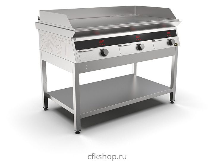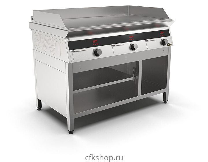 Индукционный гриль SMART INDUCTION G76-PPRN предназначен для приготовления мясных, рыбных и овощных блюд на предприятиях общественного питания и торговли. Модель оснащена электронно-механической панелью управления с цифровой индикацией и сенсорными кнопками, съемным жировым фильтром для отделения жира и влаги от поступающего внутрь аппарата воздуха, ящиком для сбора жира и регулируемыми по высоте ножками. Корпус и столешница выполнены из нержавеющей стали AISI430, рабочая поверхность и передняя панель - из нержавеющей стали.