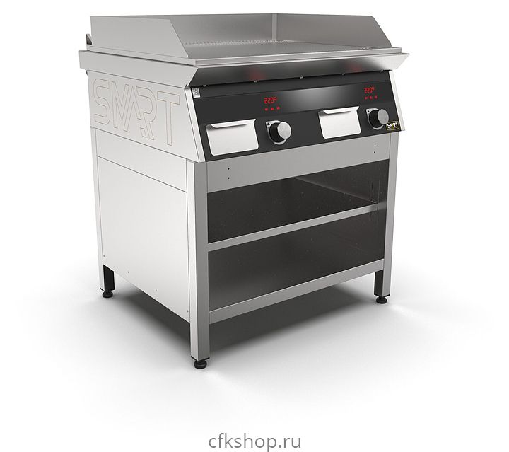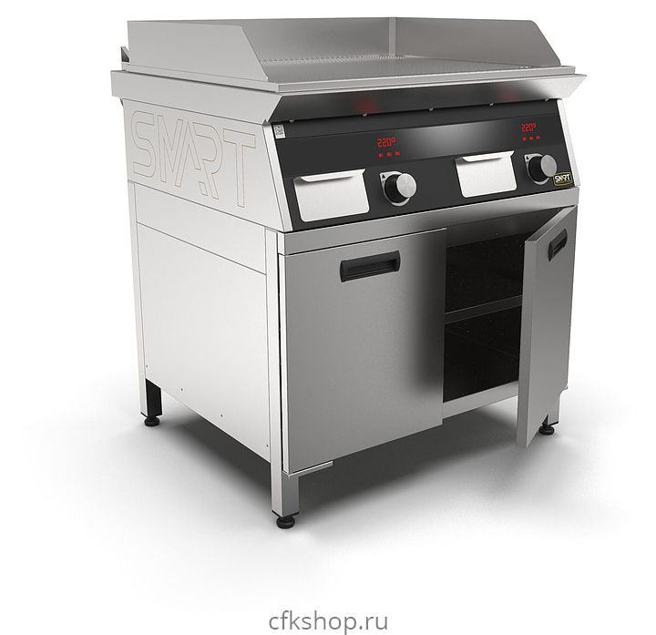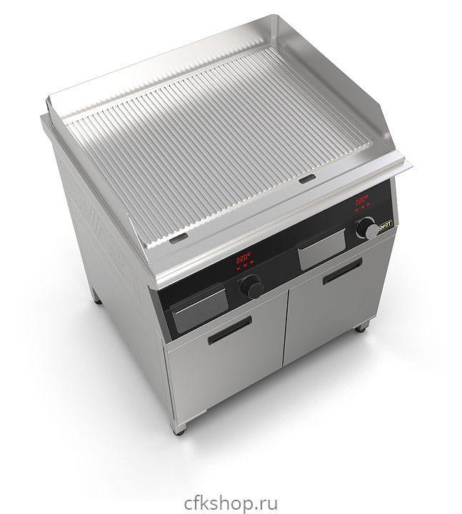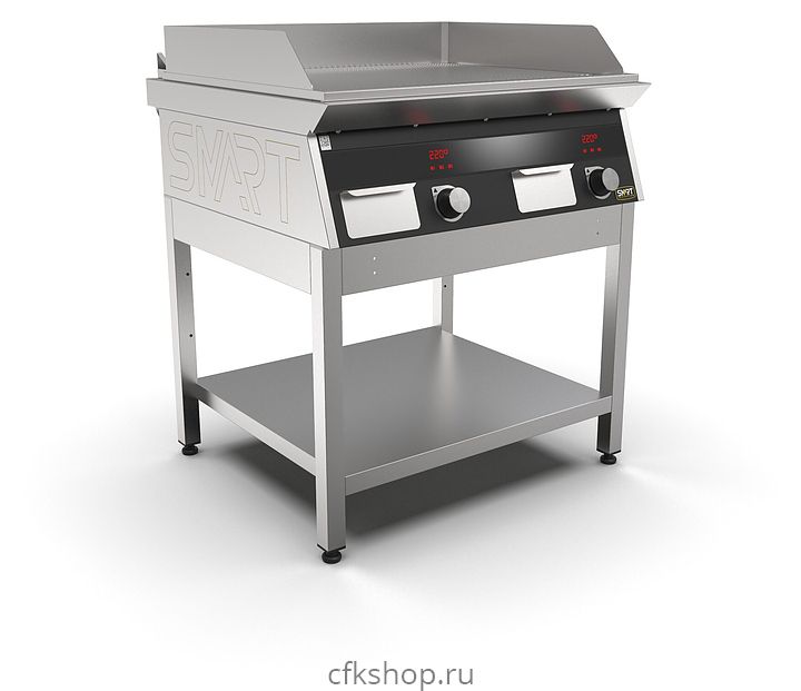 Индукционный гриль SMART INDUCTION G94-RB предназначен для приготовления мясных, рыбных и овощных блюд на предприятиях общественного питания и торговли. Модель оснащена электронно-механической панелью управления с цифровой индикацией и сенсорными кнопками, съемным жировым фильтром для отделения жира и влаги от поступающего внутрь аппарата воздуха, ящиком для сбора жира и регулируемыми по высоте ножками. Корпус и столешница выполнены из нержавеющей стали AISI430, рабочая поверхность - из нержавеющей стали, передняя панель имеет стойкое полимерное покрытие черного цвета.