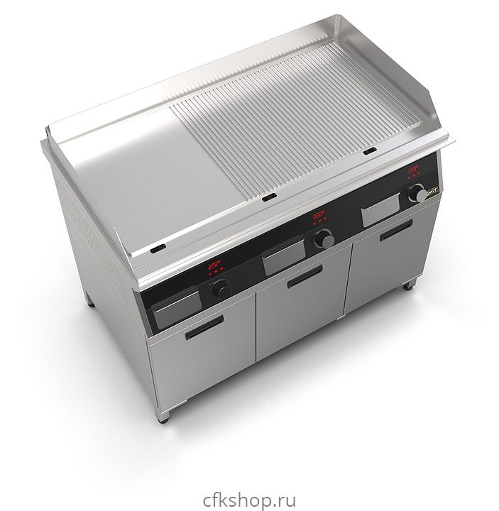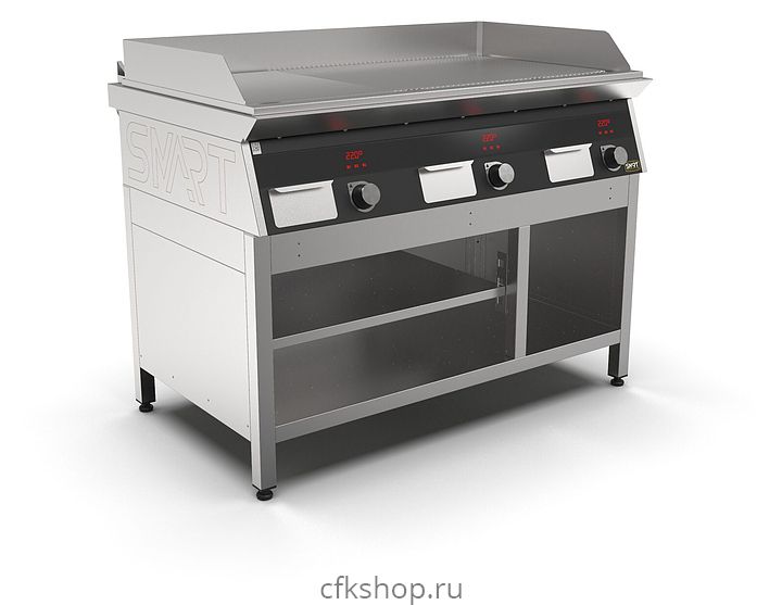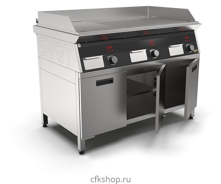 Индукционный гриль SMART INDUCTION G96-PRRB предназначен для приготовления мясных, рыбных и овощных блюд на предприятиях общественного питания и торговли. Модель оснащена электронно-механической панелью управления с цифровой индикацией и сенсорными кнопками, съемным жировым фильтром для отделения жира и влаги от поступающего внутрь аппарата воздуха, ящиком для сбора жира и регулируемыми по высоте ножками. Корпус и столешница выполнены из нержавеющей стали AISI430, рабочая поверхность - из нержавеющей стали, передняя панель имеет стойкое полимерное покрытие черного цвета.