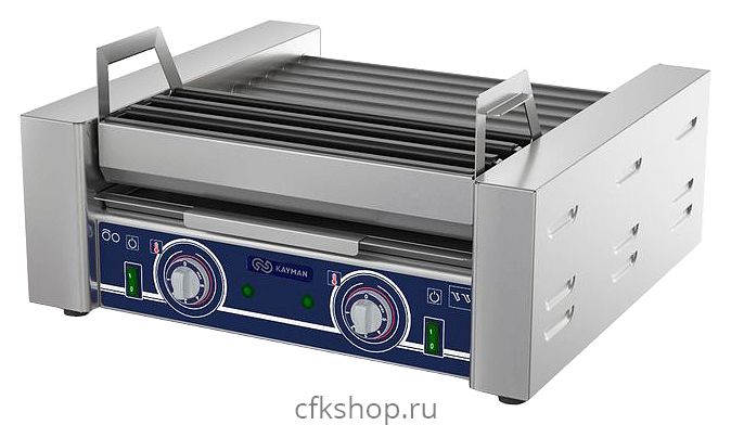 Комбинированный гриль KAYMAN КГЭ-6-Н А предназначен для обжаривания сосисок и котлет, используемых для приготовления хот-догов и бургеров на предприятиях общественного питания и торговли. Модель оснащена 2 рабочими зонами и 2 регуляторами температуры, расположенными на передней панели. Все корпусные элементы, включая ролики, выполнены из пищевой нержавеющей стали, жарочные секции - из углеродистой стали с антипригарным покрытием.