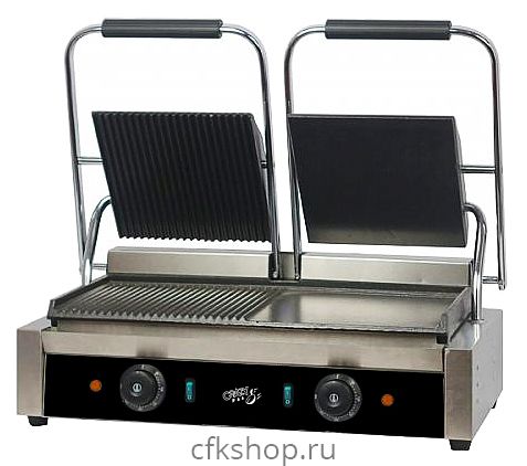 Контактный гриль Crazy Pan CP-CG44MT предназначен для жарки, быстрого приготовления и разогрева блюд из мяса, рыбы, птицы и полуфабрикатов на предприятиях общественного питания и торговли. Модель оснащена 2 световыми индикаторами нагрева, 2 переключателями питания, жиросборником и ручками. Рабочая поверхность имеет антипригарное покрытие.