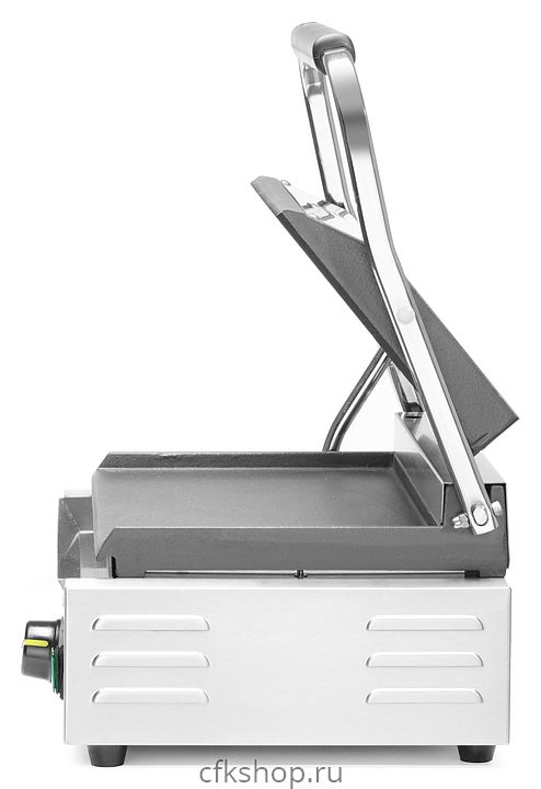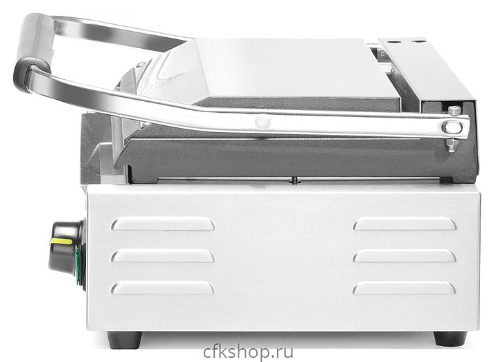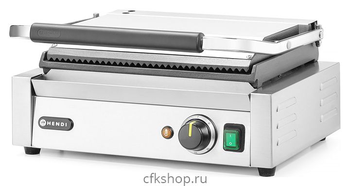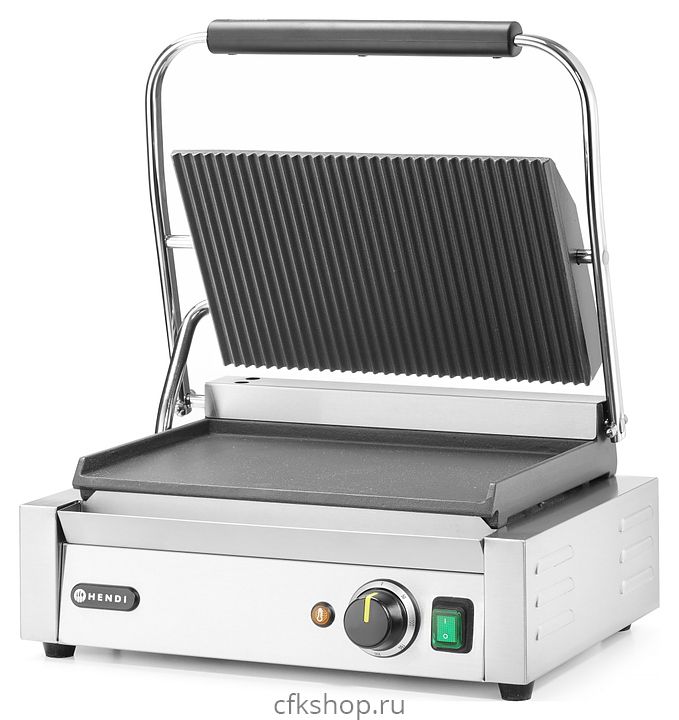 Контактный гриль HENDI Panini 263662 предназначен для жарки мяса, птицы, рыбы, овощей, а также для приготовления стейков, сосисок, гамбургеров и горячих сэндвичей на предприятиях общественного питания и торговли. Модель оснащена термостатом, электромеханической панелью управления, сетевым выключателем со встроенным индикатором, индикатором предварительного нагрева и кабелем питания с заземленной вилкой. Корпус выполнен из нержавеющей стали 18/10, ручки - из термостойкого материала, жарочные поверхности - из чугуна и имеют эмалированное покрытие.