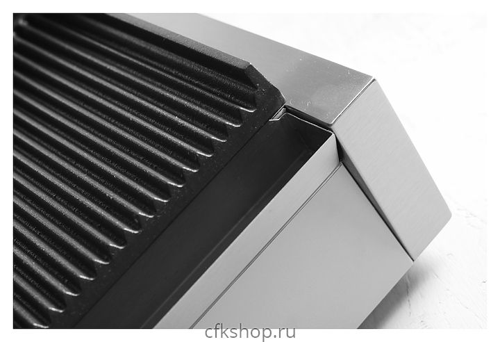 - Задний и боковые бортики нижнего гриля, а также поддон для сбора капель облегчают очистку