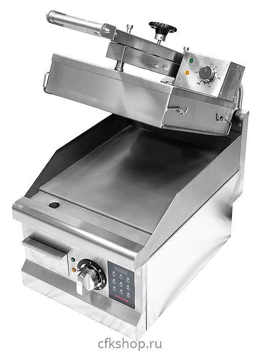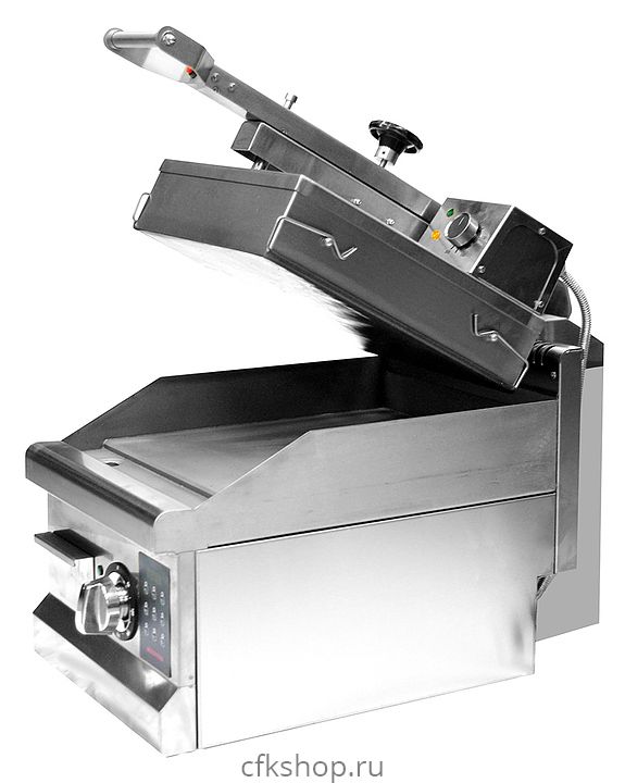 Контактный гриль Kocateq GH33ED предназначен для жарки мяса, птицы, рыбы и овощей, приготовления стейков, гамбургеров и горячих сэндвичей на предприятиях общественного питания и торговли. Модель оснащена цифровой панелью управления, аналоговыми термостатами для регулировки температуры, съемным лотком для сбора жира. Корпус выполнен из нержавеющей стали, ножки - из пластика, нижняя пластина - из теплопроводящего сплава, верхняя пластина покрыта сменной тефлонированной стеклотканью.