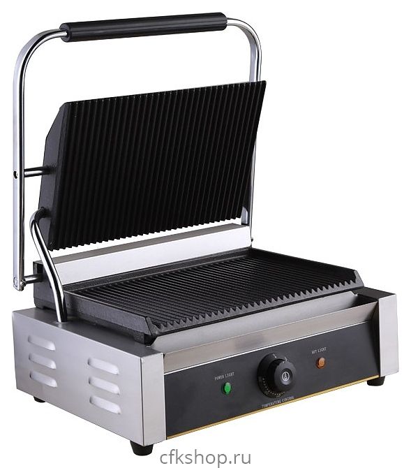Электрический контактный гриль CuisinAid CD-GH-811EH предназначен для жарки мяса, птицы, рыбы, овощей, а также для приготовления стейков, гамбургеров и горячих сэндвичей на предприятиях пищевой промышленности, общественного питания и торговли. Модель оснащена откидной верхней створкой с широкой дугообразной рукояткой и электромеханической панелью управления. Жарочные пластины выполнены из эмалированного чугуна.
