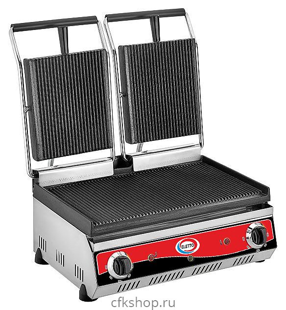 Прижимной гриль Eletto R80 предназначен для жарки мяса, птицы, рыбы, овощей, а также для приготовления стейков, гамбургеров и горячих сэндвичей на предприятиях общественного питания и торговли. Модель оснащена 2 термостатами с регуляторами температуры и 2 световыми индикаторами нагрева.