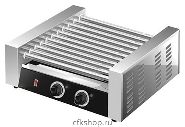 Роликовый гриль EKSI HHD-11B предназначен для обжаривания сосисок, сарделек и колбасок на предприятиях общественного питания и уличной торговли. Постоянное вращение роликов способствует прожариванию продуктов со всех сторон. Модель оснащена 2 ручками для регулировки температуры и съемным подносом для сбора жира. Корпус и покрытие роликов выполнены из нержавеющей стали.