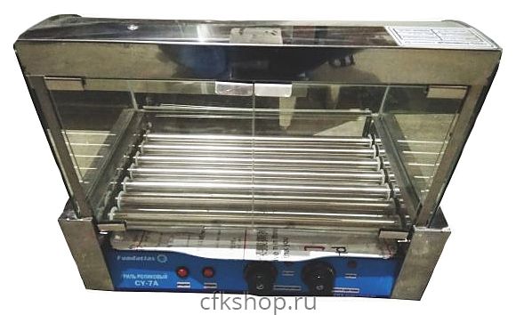 Роликовый гриль Foodatlas CY-7A предназначен для быстрого равномерного обжаривания сосисок, сарделек и колбасок на предприятиях общественного питания и торговли. Модель оснащена 2 терморегуляторами, 7 ТЭНами, защитными створками и подсветкой. Корпус, ролики и поддон выполнены из нержавеющей стали.