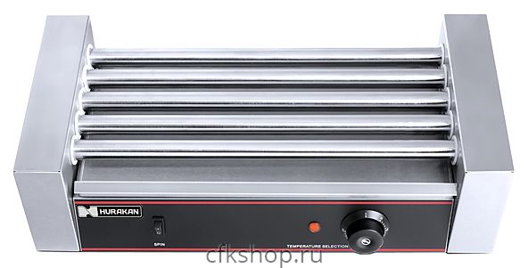 Роликовый гриль Hurakan HKN-GW5M предназначен для обжаривания сосисок и сарделек, мясных и рыбных рулетов на предприятиях общественного питания и торговли. Модель оснащена регулируемым термостатом и индикатором нагрева. Корпус и ролики выполнены из нержавеющей стали.