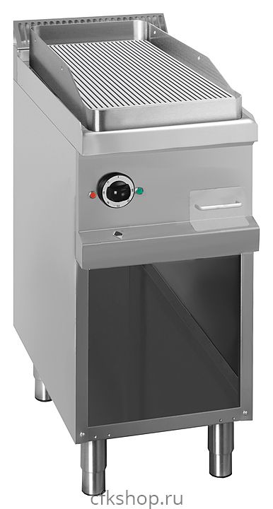 - Уклон к фронту для облегчения очистки и стока жира в съемный контейнер из нержавеющей стали