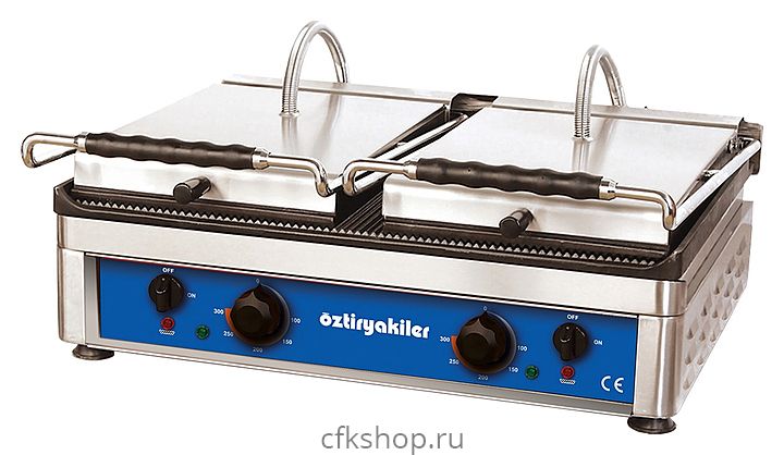 Прижимной гриль-тостер OZTI OTM 5530 предназначен для приготовления блюд из мяса, птицы, рыбы, овощей, горячих бутербродов различных размеров и тостов с начинкой на предприятиях общественного питания, а также в производственных цехах, деятельность которых связана с выпуском гастрономических товаров. Корпус выполнен из нержавеющей стали, рифленая поверхность - из чугуна, гладкая - из стали, ручки - из термостойкого материала.