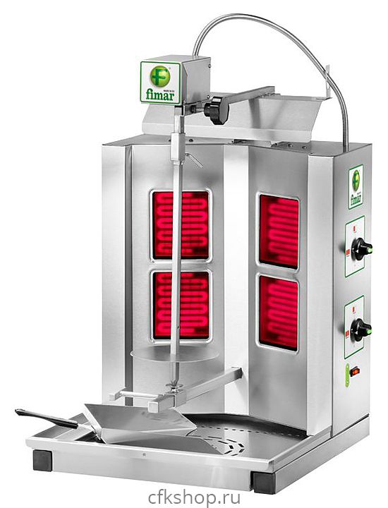 Гриль для шаурмы FIMAR GYR40 используется на предприятиях общественного питания и торговли для приготовления мясной начинки. Модель оснащена 3 уровнями мощности, инфракрасными ТЭНами с керамическим покрытием и жаростойким защитным стеклом. Корпус, шампур, лопатка и поддон для сбора отходов выполнены из нержавеющей стали.