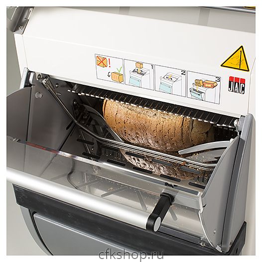 Хлеборезка класса самообслуживания Jac New Self 450 используется на предприятиях общественного питания и торговли для нарезки формового и подового хлеба, хлебобулочных изделий, а также заготовок для сухариков. Модель оснащена передней и задней крышками,которые фиксируются во время резки.