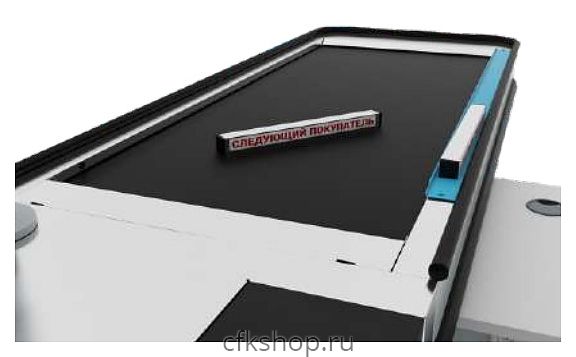 Желоб MAGMA ЛТ100.01.100Т.03.000 используется совместно с кассовыми боксами на предприятиях торговли для компактного хранения разделителя покупок. Аксессуар монтируется у кромки стола транспортера двухсторонней клейкой лентой.
