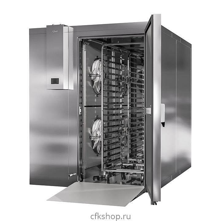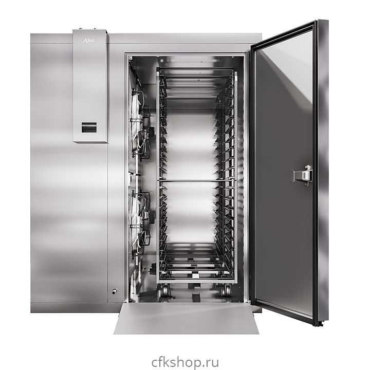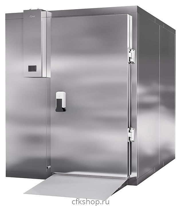 Камера шоковой заморозки Abat ШОКК-202 предназначена для быстрого охлаждения и замораживания различных пищевых продуктов и полуфабрикатов для дальнейшего их хранения на низкотемпературных складах предприятий общественного питания. Модель оснащена 2 воздухоохладителями с 2 вентиляторами каждый, навесной дверью с низкотемпературным уплотнителем, подогревом и двусторонним замком. Пандус и пол камеры выполнены из рифленого нержавеющего листа, стенки и потолок - сендвич-панели из высококачественной нержавеющей стали толщиной 80 мм.