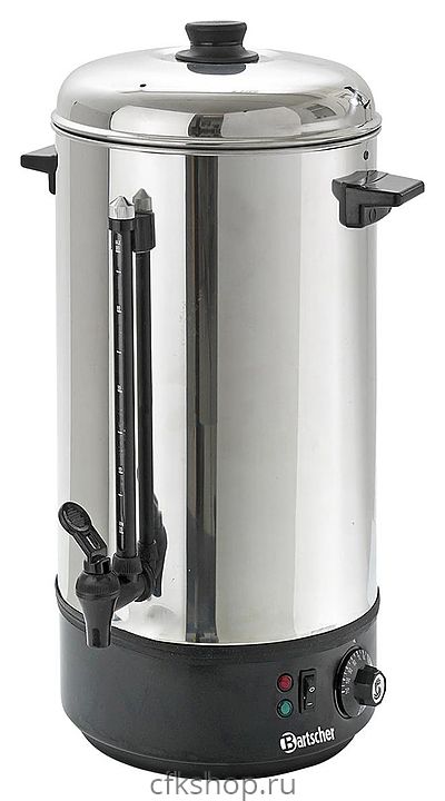 Кипятильник Bartscher 200054 используется в квартирах, частных домах, кафе и ресторанах для нагрева большого количества воды и приготовления горячих напитков. Корпус и крышка выполнены из нержавеющей стали, основа - из пластика.