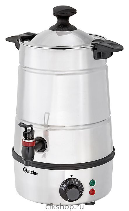 Кипятильник Bartscher 200061 используется в квартирах, частных домах, кафе и ресторанах для нагрева большого количества воды и приготовления горячих напитков. Корпус и крышка выполнены из нержавеющей стали, ручки и спускной кран - из пластмассы.