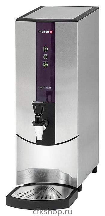 Кипятильник Marco Ecoboiler T20 используется на предприятиях общественного питания и торговли, в офисах и гостиницах для нагрева большого количества воды. Модель оснащена сливным краном и каплесборником. Залив воды осуществляется автоматически. Бойлер выполнен из нержавеющей стали.