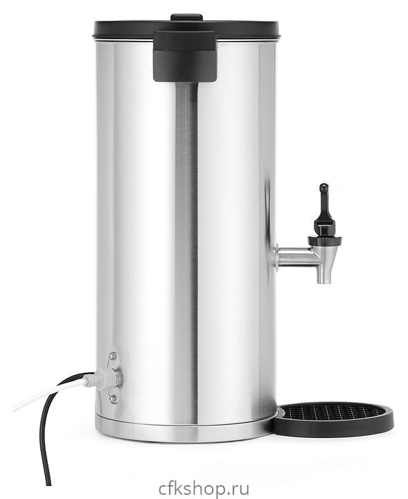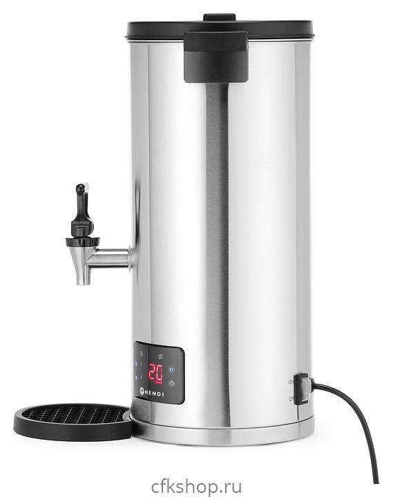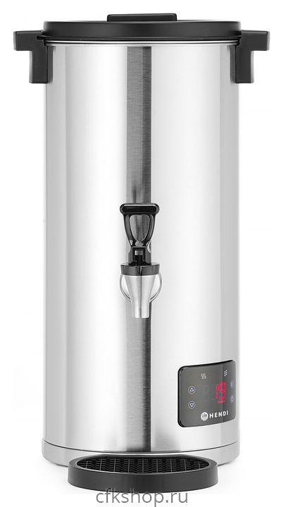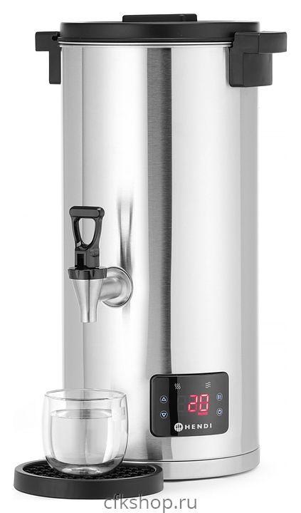 Кипятильник HENDI 240717 предназначен для нагрева и кипячения воды на предприятиях общественного питания и торговли. Модель оснащена двумя датчиками уровня воды, панелью управления с цифровым дисплеем и контроля температуры нагрева и датчиком предотвращения переполнения бойлера. Изделие выполнено из полированной нержавеющей стали с полипропиленовыми крышкой и ручками, кран - из нержавеющей стали и оснащен приятной на ощупь ручкой.