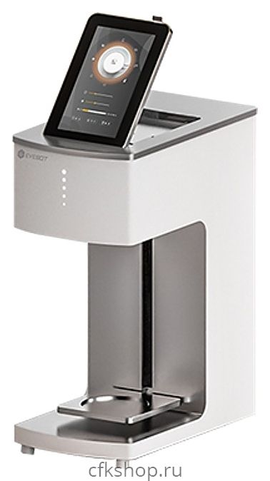 Компактный кофе-принтер Evebot Fantasia Mini предназначен для печати любых изображений, текста и фото поверх слоя пены кофейных напитков, молочных коктейлей, пива и на поверхности десертов в кофейнях, кафе, ресторанах и других предприятиях общественного питания и торговли. Модель оснащена интегрированным в корппус планшетом на платформе Аndroid.