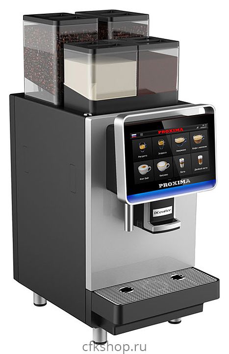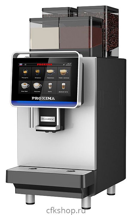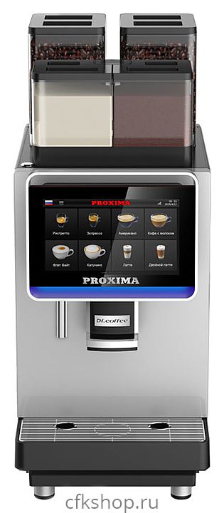 Кофемашина Dr.coffee Proxima F2 Plus используется на предприятиях общественного питания и торговли, в офисах, а также в домашних условиях для приготовления кофе и кофейных напитков. Модель оснащена графическим сенсорным дисплеем с блокировкой функции изменения параметров напитков для пользовательского меню. Жернова кофемолки выполнены из керамики, бойлер - из алюминия, контейнеры, каплесборник, заварное устройство - из пластика.