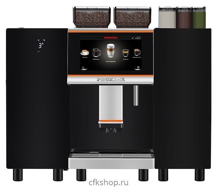 Кофемашина Dr.coffee Proxima F22 используется на предприятиях общественного питания и торговли для приготовления кофе и напитков на его основе. Модель оснащена 2 кофемолками с плоскими жерновами, встроенным клапаном для промывки молочной системы и сенсорным экраном с интуитивно-понятным русифицированным интерфейсом. Корпус, контейнер отработанного кофе и каплесборник выполнены из пластика, жернова – из керамики, трубка для подачи пара/горячей воды и съемное заварное устройство - из металла.
