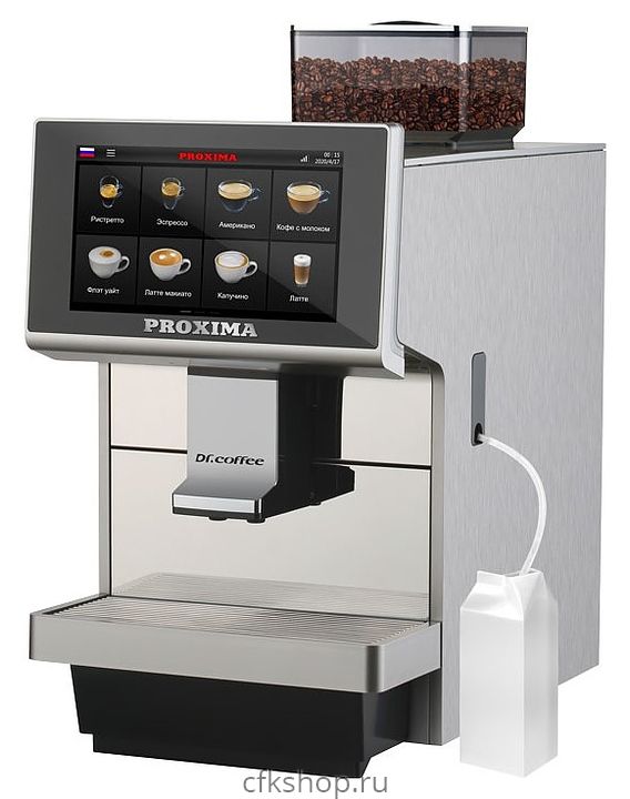 Кофемашина Dr.coffee Proxima М12 используется на предприятиях общественного питания и торговли для приготовления кофе и напитков на его основе. Модель оснащена сенсорной панелью с интуитивно понятным интерфейсом. Корпус, контейнер отработанного кофе, съемное заварное устройство, каплесборник и трубка подачи пара воды выполнены из пластика, жернова – из керамики, проточные бойлеры - из алюминия.