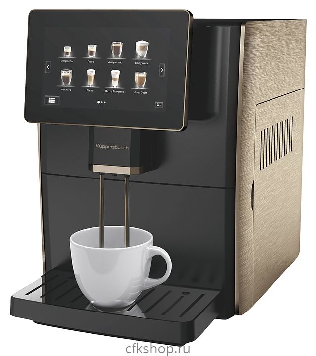 Автоматическая кофемашина Kuppersbusch KVS 308 G используется на предприятиях общественного питания и торговли, в офисах, гостиницах и офисах, а также в домашних условиях для приготовления кофе и напитков на его основе. Модель оснащена сенсорной панелью упраления с HD TFT-дисплеем. Корпус выполнен из прочного черного пластика, боковые панели – из пластика цвета золотистый металлик.