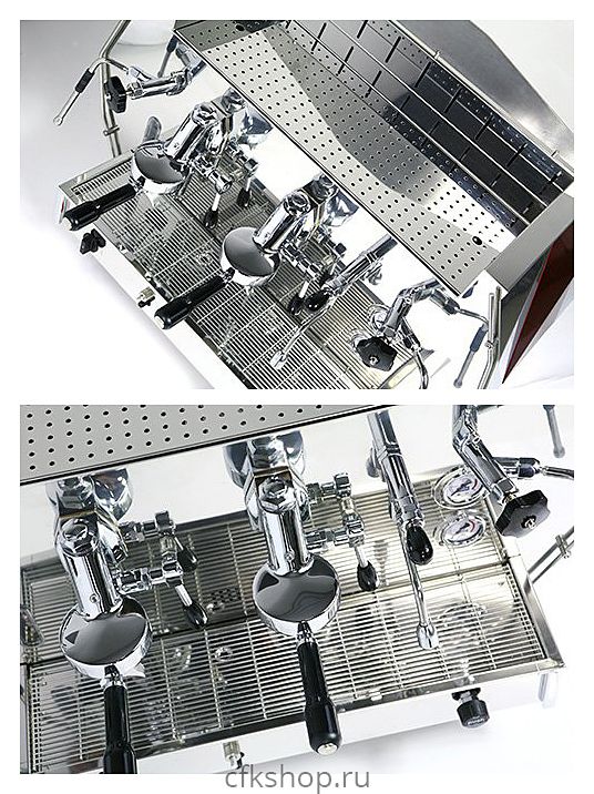 - Независимая радиаторная гидравлическая система для каждой группы - обеспечивает равномерную циркуляцию воды по всему бойлеру, в результате чего получается равномерная, стабильная температура воды без карманов с переменной температурой, которые могут повредить качеству эспрессо