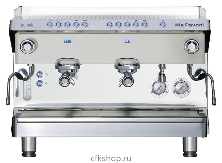 Кофемашина La Pavoni GENIALE2VBEU серии GENIALE используется на предприятиях общественного питания и торговли, в офисах, а также в домашних условиях для приготовления чая, кофе и кофейных напитков. Модель оснащена 2 литыми никелированными латунными группами с вертикальной инфузионной камерой. Каплесборник с решеткой выполнен из нержавеющей стали AISI 304, бойлер - из меди.