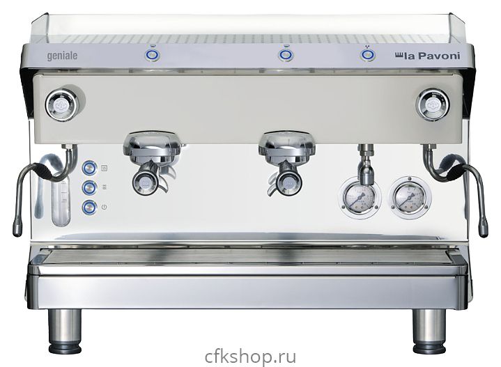Кофемашина La Pavoni GENIALE2MB серии GENIALE используется на предприятиях общественного питания и торговли, в офисах, а также в домашних условиях для приготовления чая, кофе и кофейных напитков. Модель оснащена 2 литыми никелированными латунными группами с вертикальной инфузионной камерой. Каплесборник с решеткой выполнен из нержавеющей стали AISI 304, бойлер - из меди.